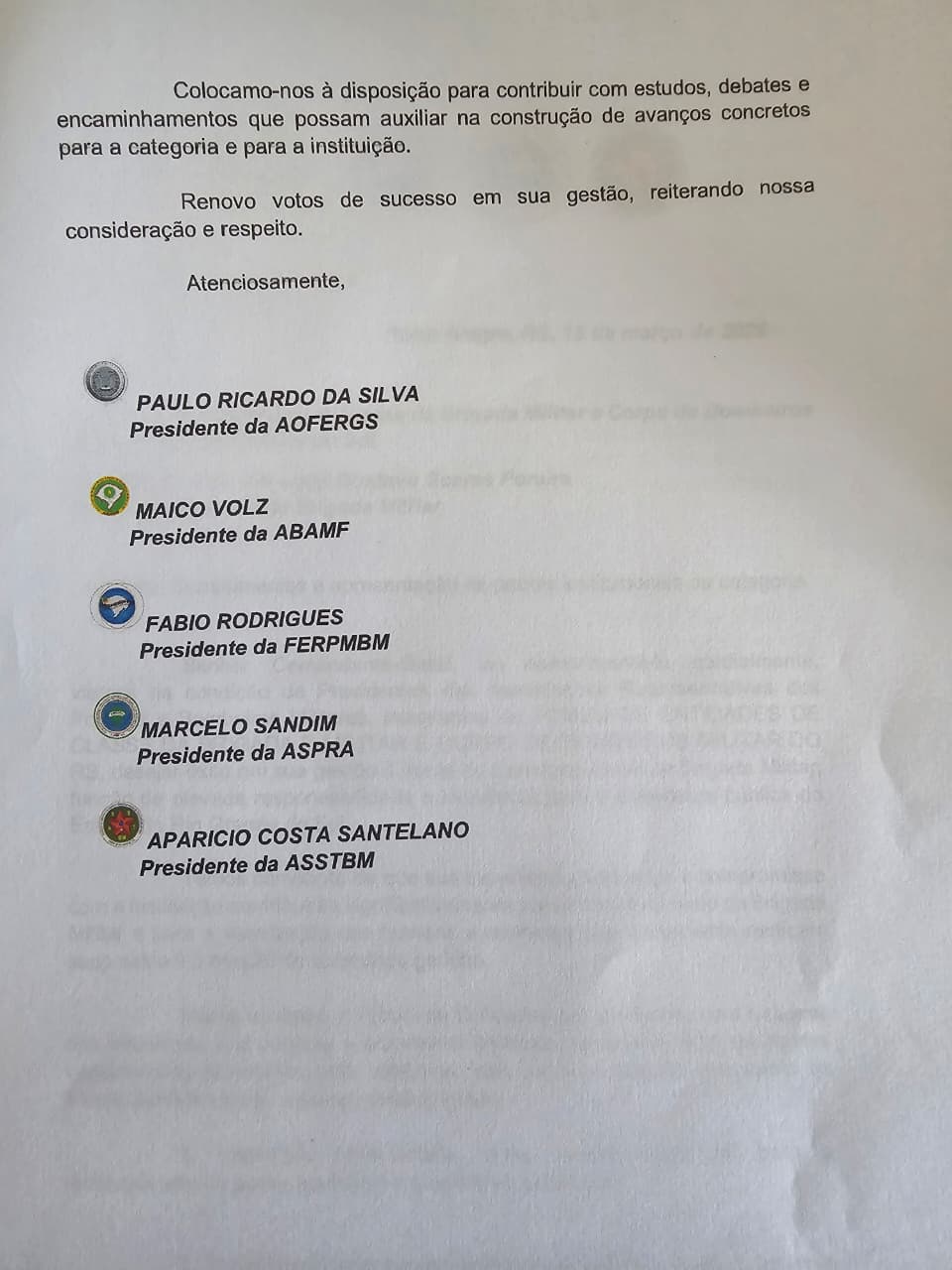 Além dos itens pautados no ofício, foi requisitada a divulgação de um cronograma de convocação do certame do CTSP em andamento, o qual, segundo o Comando, deve ser divulgado nas próximas semanas.