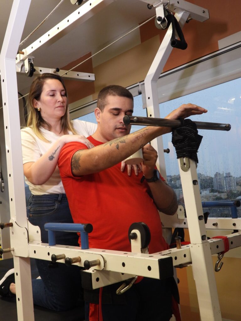 “Assim que comecei a fisioterapia, eu dei meu máximo. Para eu ficar de pé, demorou um mês e meio. Eu desmaiava, caía a pressão. O pessoal dizia ‘ah, vamo esperar uns 15 minutinhos pra tu subir de novo’. E eu dizia ‘ah, eu não negocio com a dor. Vamo subir e é isso aí’. Não termino quando tô cansado ou com dor; eu termino quando acaba”, narra Giuliano.
